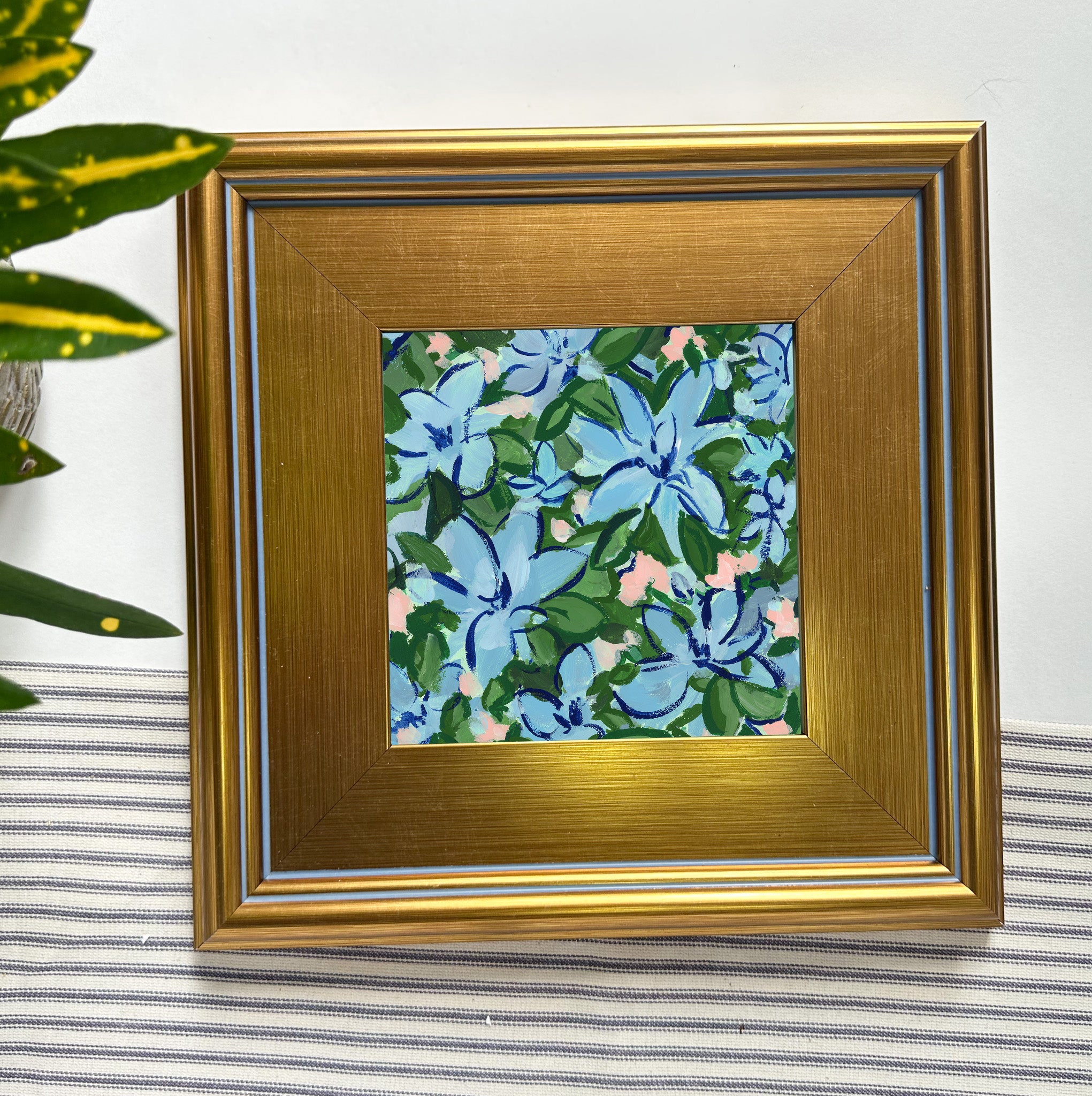 acrylic and gouache paint on gesso board, framed in a gold traditional style frame