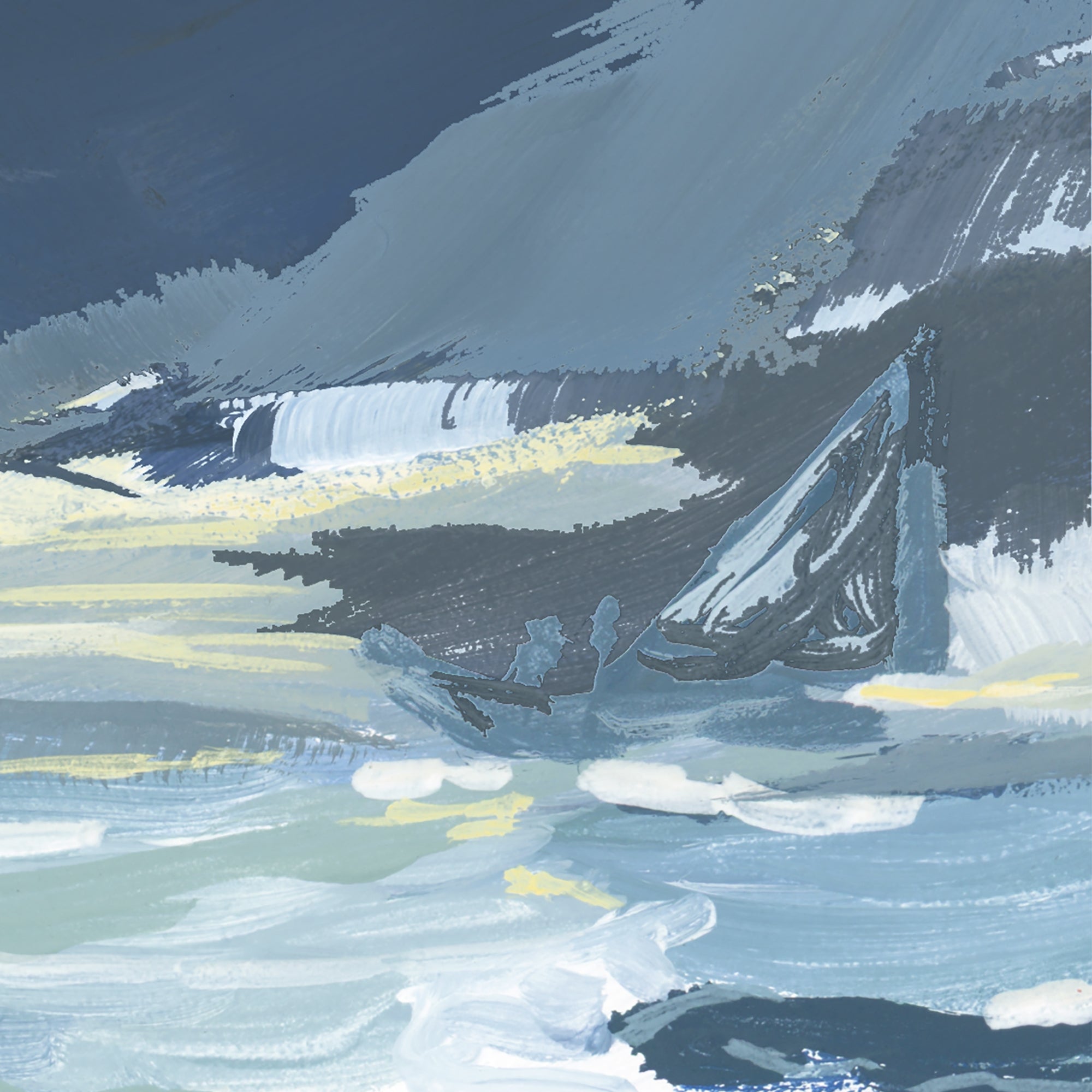 Inspired by the work of Winslow Homer, this painting captures the first gusts of a summer squall. A lone sailboat on the horizon—likely racing for shore—evokes the timeless struggle between man and nature.